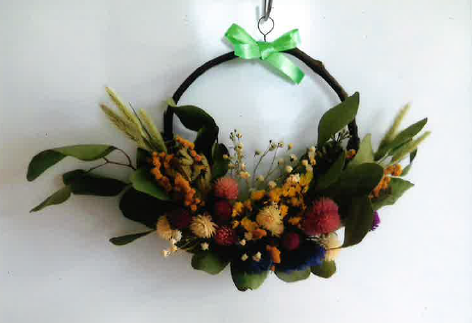 ユーカリ・ミモザ・千日紅等を使って癒しのリースを作りましょう